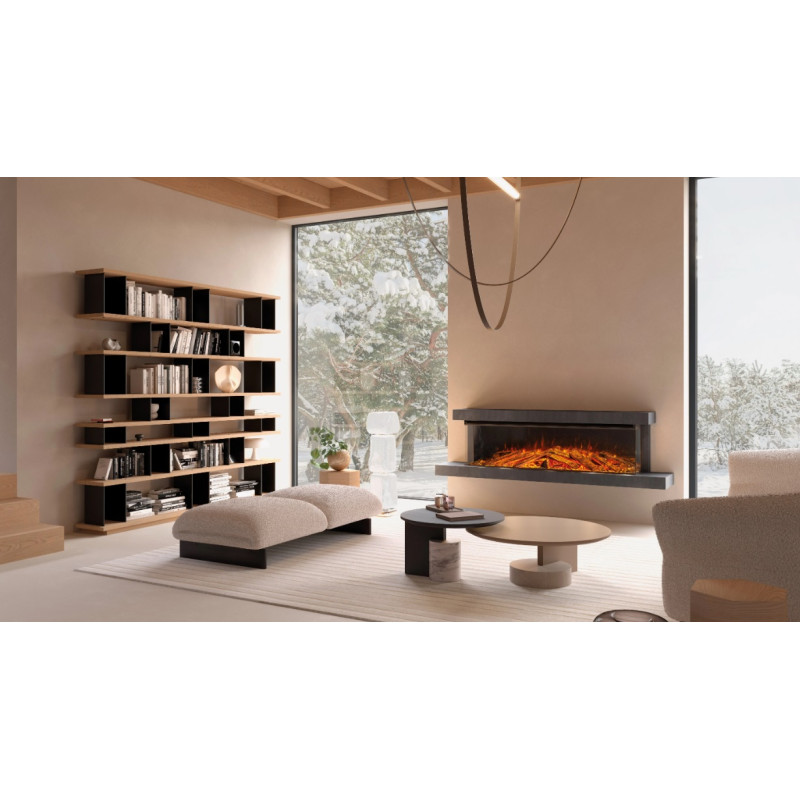 Variabilní Umístění: Můžete ho zcela zapustit do zdi a vytvořit tak dojem vestavěného krbu (s možností čelního, rohového nebo panoramatického prosklení), nebo jej umístit volně na stěnu s elegantním obložkovým rámem (dostupný ve 3 barvách).