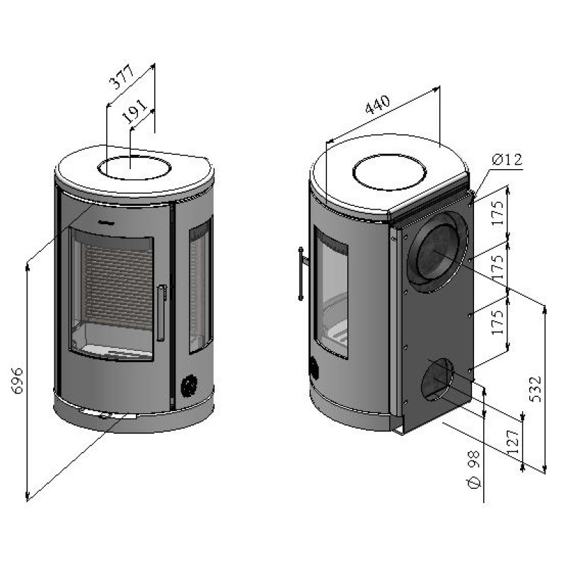 Jedná se o krbová kamna konvekční.