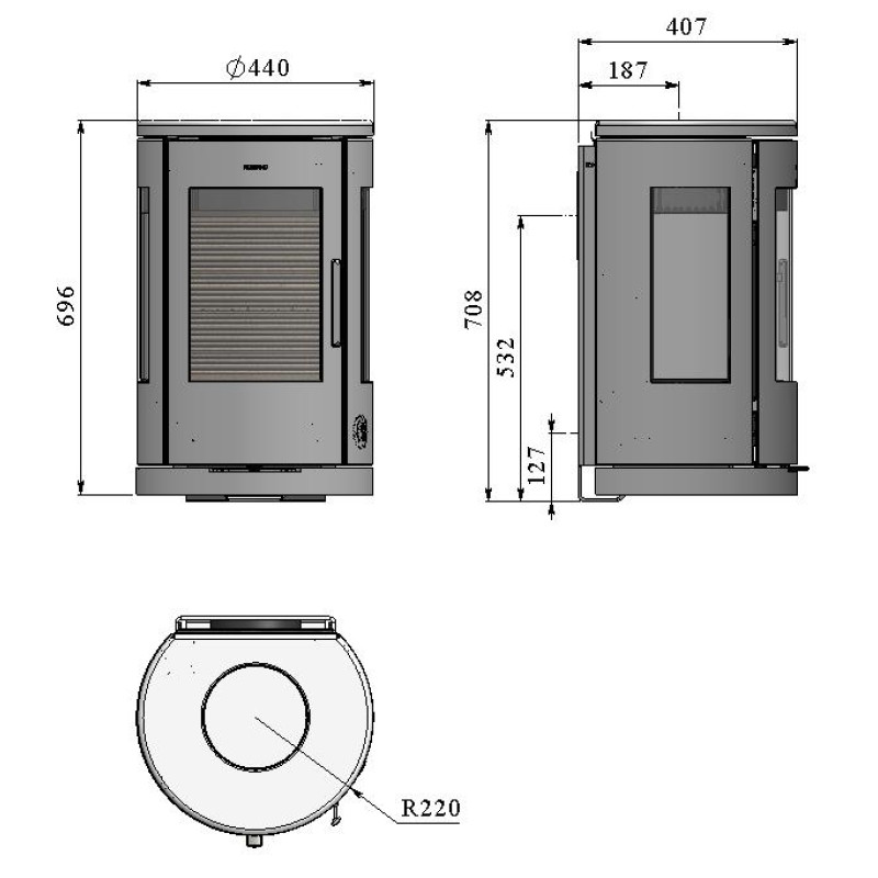 Horní vývod : ø 150 mm