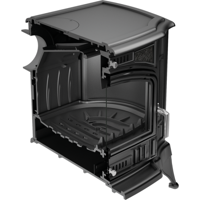 Jednou z předností kamen K9 jsou stěny topeniště, které jsou vyrobeny z vysoce kvalitní litiny o úctyhodné tloušťce 8 mm. To zaručuje maximální využití tepla a bezproblémový provoz po mnoho let. Robustnost konstrukce potvrzuje i hmotnost kamen až 165 kg, která svědčí o jejich odolnosti a spolehlivosti.