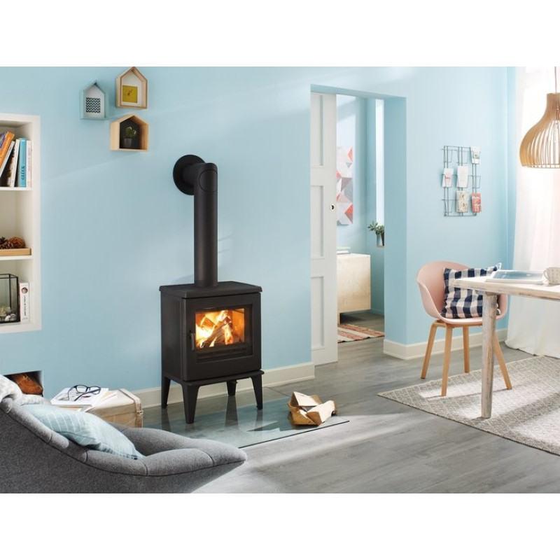 Kompaktní kvalitní litinová kamna od německého výrobce Leda vynikají masivní konstrukcí a velkým prosklením. Dokonalé spalování a pohodlné přikládání velkými dvířky zvyšuje komfort užívání. Povrchová úprava je černý matný lak. Nespornou výhodou je i možnost připojení přívodu vzduchu z exteriéru ovládání vzduchu jedním šoupákem a možnost horního či zadního odkouření.
