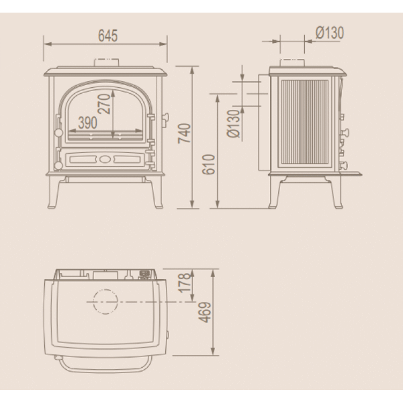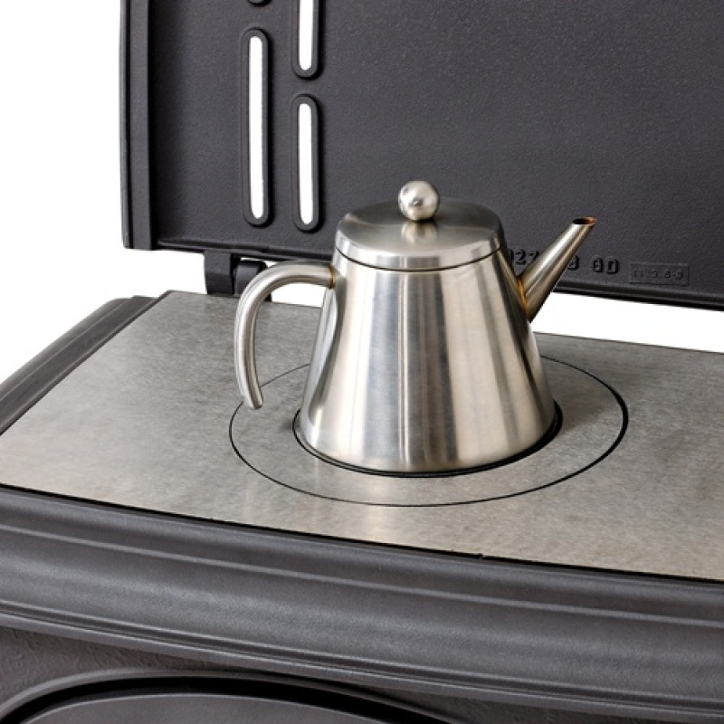 Dokonalé spalování a pohodlné přikládání i z boku kamen zvyšuje komfort užívání a velké sklo umožňuje krásný výhled na plameny. Povrchová úprava kvalitní litiny je černý matný lak. Nespornou výhodou je možnost připojení přívodu vzduchu z exteriéru a horní nebo zadní vývod kouřovodu.