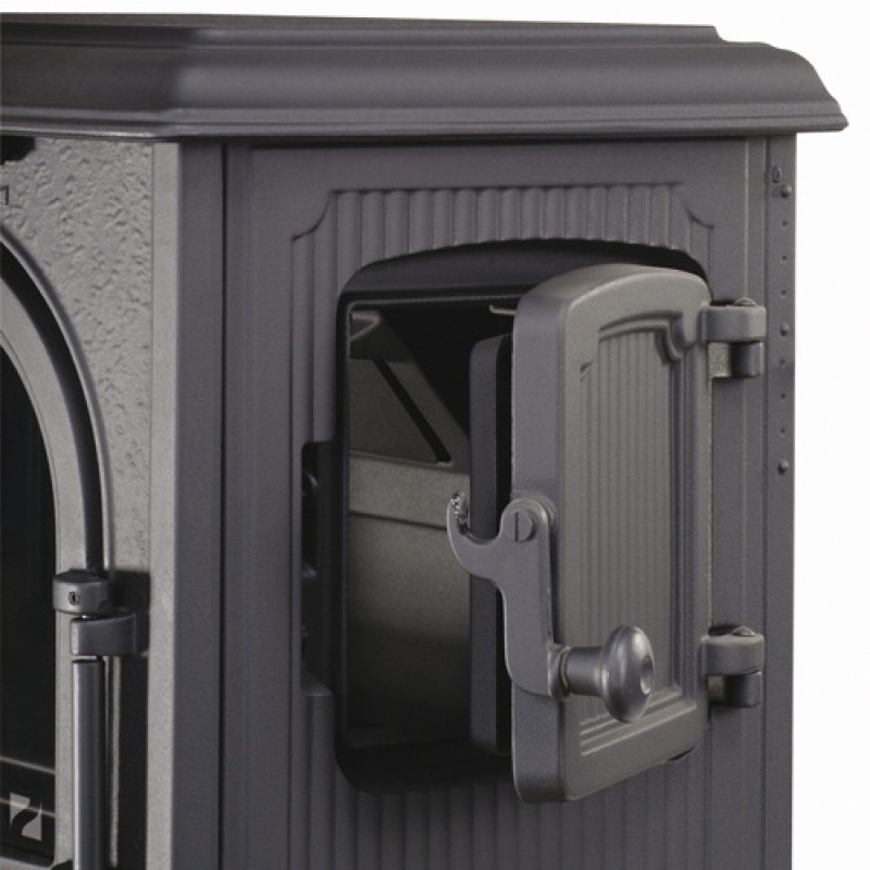 Další tradiční záležitost a výhoda těchto rustikálních kamen jsou oddělená dvířka k popelníku, takže při vynášení popela nemusíte otvírat celá dvířka od topeniště…