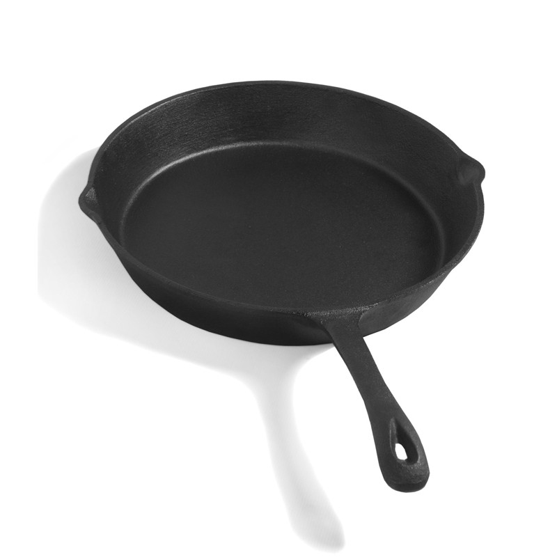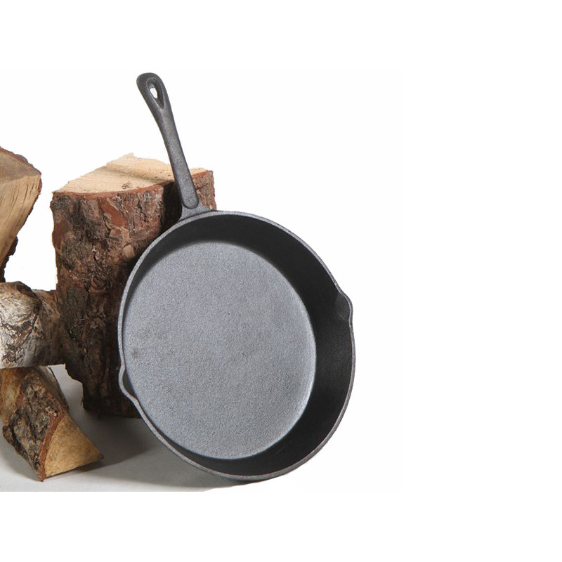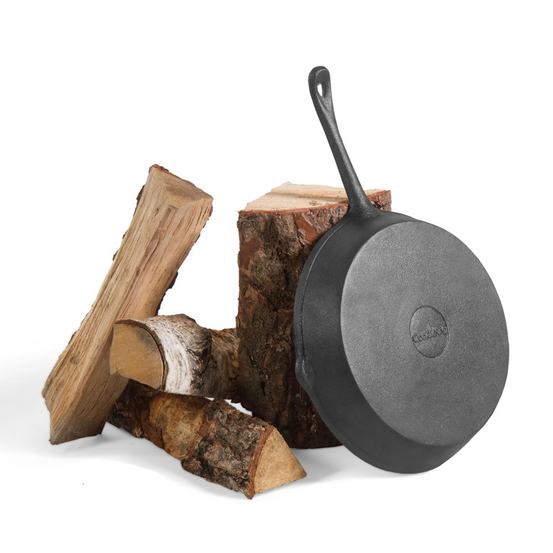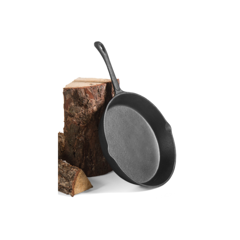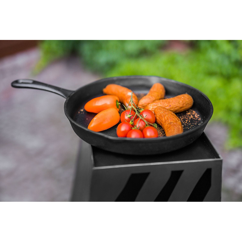 Litinová pánev s hrubým povrchem umožňuje vaření či grilování na otevřeném ohni.