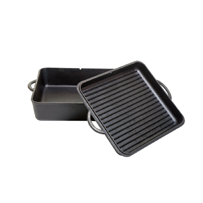 Doma nebo v kempu. Obdélníkový litinový hrnec s víkem je vhodný pro pečení či dušení masa, žebírek, chleba a mnoha jiných pokrmů. Objem hrnce činí téměř 8 litrů a dostatečně postačí pro přípravu jakéhokoliv jídla. Hrnec bez nožiček je ideální pro použití v domácí kuchyni. Litinový hrnec umožní prvotřídní vaření, jelikož rovnoměrně rozvádí teplo do připravovaných pokrmů. Univerzálnost hrnce rozšíří víko s žebrováním, které lze použít při vaření samostatně jako pekáč či pánev. Hrnec má na spodní části (dně) profil, tudíž není vhodný na indukční spotřebiče.