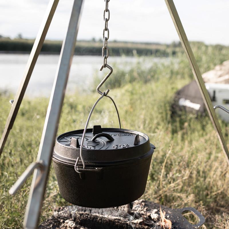 Pro vaření a přípravu jídel na přímém ohni nebo i v grilu či troubě je litinový kotlík Dutch Oven ideální. Robustní kotlík je v nabídce ve dvou provedních - s nožičkami nebo bez nožiček. Vybírat můžete ze 7 velikostí (kotlíky se dají na sebe skládat). Litinový kotlík má všestranné využití: