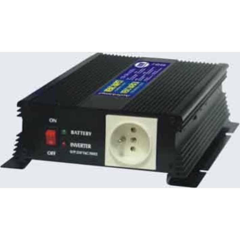 1/Vhodný pro provoz čerpacích jednotek teplovodních krbových vložek a kotlů,počítačů,televizorů,videí,ledniček, příručního nářadí, světlometů atd. v automobilu. Připojuje se a napětí 12V nebo 24V k autobaterii nebo do palubní sítě automobilu pomocí kabelů (součást dodávky). Výstupní napětí na zásuvce je 220V, trvalá zatížitelnost je 600W, špičkově 1500W. Chlazení ventilátorem.