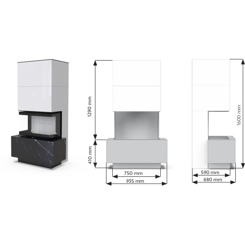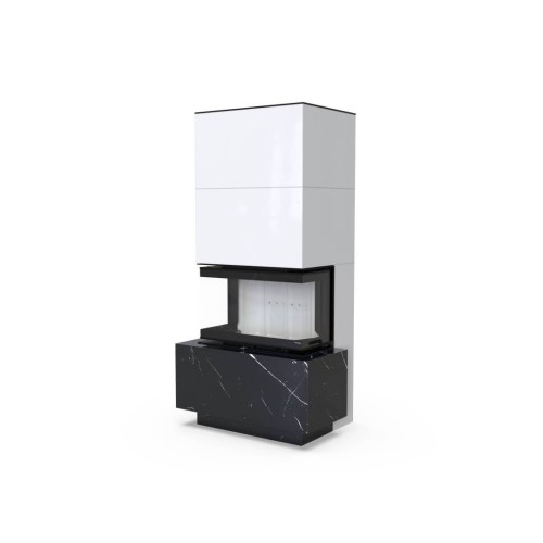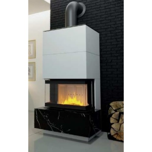 Trojprosklený krb má inovativní systém zavírání dvířek, který zajišťuje dostatečný komfort otevírání a zavírání a těsnost topeniště. Původní konstrukce pece je vybavena systémem dvou deflektorů prodlužujících cestu spalin. Využívá také precizní řešení přívodu spalovacího vzduchu - Multiflow. Krb je zakončen vysoce kvalitním keramickým sintrem se sítotiskem poskytujícím tepelnou odolnost až 750 °C - Black Line. Obložení topeniště je vyrobeno z odolného Ceramitonu ve dvou odstínech: světlý a černý. Kvalita použitých materiálů a provedení zařízení umožňuje splnit přísné evropské ekologické normy.