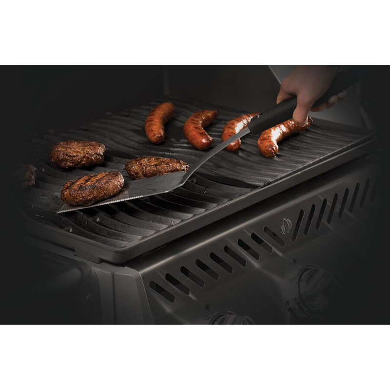 Dvojdílná sada grilovacího náčiní z kvalitní nerezové oceli obsahuje obracečku s prodlouženou plochou, ostřím a zoubkovanou hranou, a robustní snadno uzamykatelné kleště, se kterými uchopíte i větší kusy masa. Nářadí jsme vybavili praktickým poutkem pro zavěšení a je možné ho mýt v myčce.