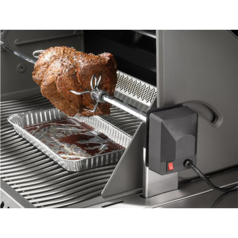 Otočný nerez rožeň (rotisserie) s motorem Heavy Duty pro grilování na plynových grilech NAPOLEON řady 325 / 410 / 495. Doplňte Váš zahradní gril o otočný rožeň a získejte tak efektivnější způsob grilování a křehké propečené maso.