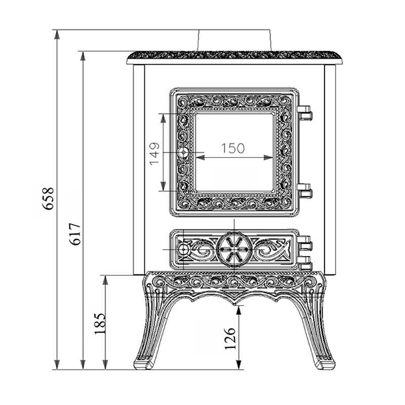 Malá stylová krbová kamna Nordflam Palestro s výkonem 8,4 kW v hladkém designu se zdobením a velkou plochou prosklení, umožňují nerušené sledování ohně. Kamna mají celolitinové topeniště, litinový rošt, popelník pod roštem, systém čištění skla vzduchem a primární a sekundární regulátor.