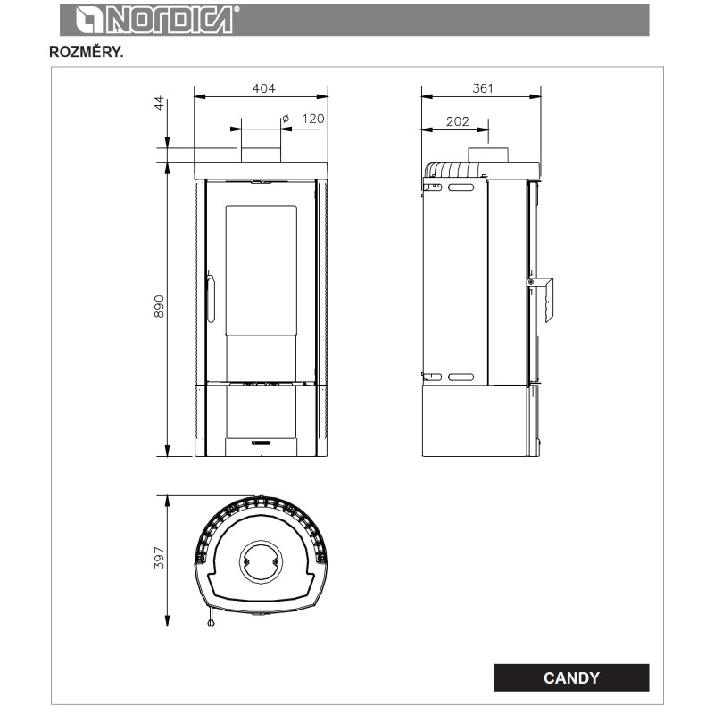 Krbová litinová kamna Nordica Candy - Antracitová černá