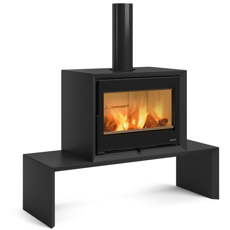 Konstrukce topeniště kamen je litinové s keramickými deskami Nordiker, které akumulují teplo a zlepšují tak průběh spalování. Jedná se o materiál s velkou tepelnou a mechanickou odolností. Díky světlé barvě desek krásně vyniknou hořící plameny při topení a efekt krbu je tak maximálně podpořen. Dvířka krbové vložky jsou také litinová a jsou kryta černým lemem keramického skla přichyceným z vnější strany. Regulovatelný je primární a sekundární vzduch pomocí jednoho táhla pod dvířky topeniště. Terciální vzduch je přednastaven z výroby a nasáván vlivem podtlaku komínu. Při spalování tak dochází k maximálnímu prohoření paliva, o čemž svědčí velmi vysoká účinnost přesahující hodnotu 80 %. Krbová kamna umožňují napojení na externí přívod vzduchu a zabránit tak čerpání vzduchu pro hoření z místnosti.