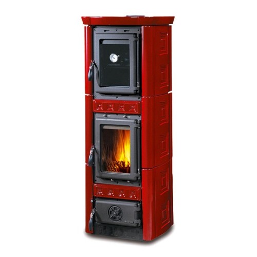Malá výkonem, velká výškou, těžká pro akumulaci tepla, elegantní kachlový obklad a  vyladěné trojité  spalování  s  činnosti 82%. Klasické provedení s dvěmi dvířky, jedno přikládací a jedno na popelník s malými oddělovacími kachličky je velmi líbivé. Nejnovější způsob trojitého spalování dřeva udržuje hodně tepla v kamnech, málo znečišťuje sklo a kouřové cesty. Doplněním o funkční troubu vznikla vyšší konstrukce s ještě vyšší hmotností s rozšířenou funkčností. Při pohledu na obrázek se musí každému líbit jak kamna vypadají v interiéru i detail provedení v barvě pergamena nebo bordo. Barevná varianta v barvě Capucino je také  velmi oblíbená.