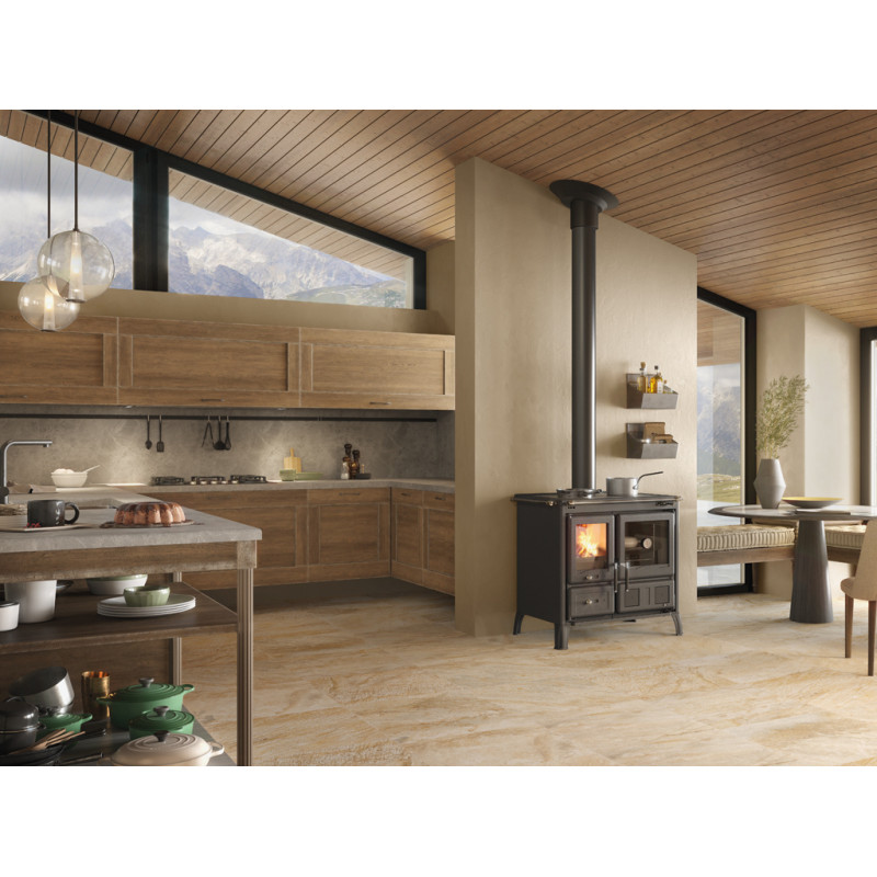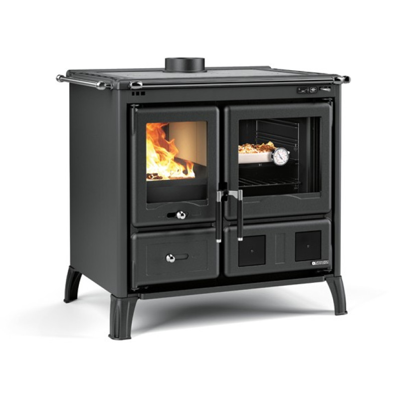 Nové chromované madlo, odvětrávané bočnice ze smaltované oceli nebo přírodního kamene, topeniště se žáruvzdornými bočnicemi z materiálu NORDIKER a litinovým dnem, smaltovaným popelníkem a smaltované litinové nožičky, to vše podtrhuje luxusní vzhled a promyšlenou funkci tohoto sporáku. Smaltované litinové čelo, rám a dvířka doplněné o kliky s novým designem dodávají opravdový pocit jedinečnosti a elegance.