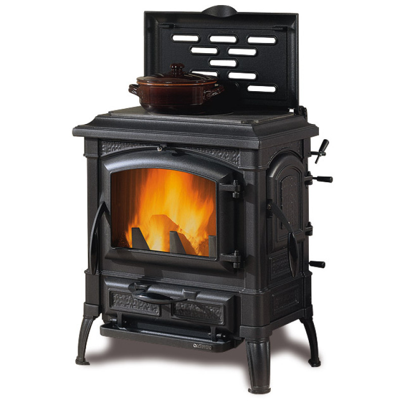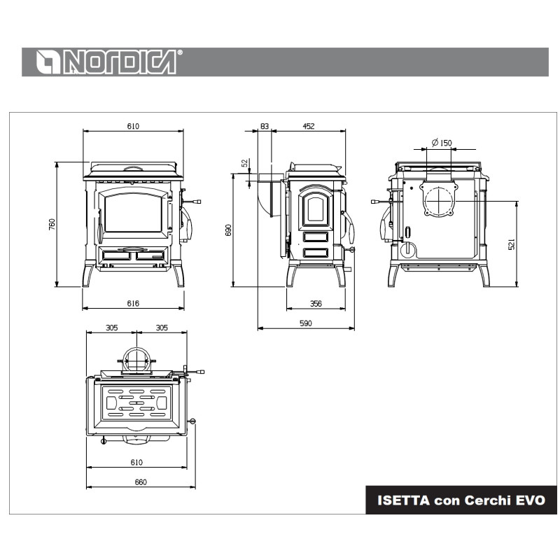 Krbová litinová kamna Nordica Isetta Con Cerchi s varnou plotnou - Antracitová černá