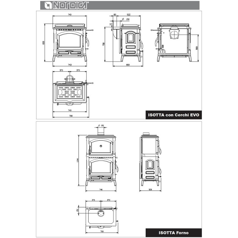 Krbová litinová kamna Nordica Isotta con cerchi s varnou plotnou - Antracitová černá