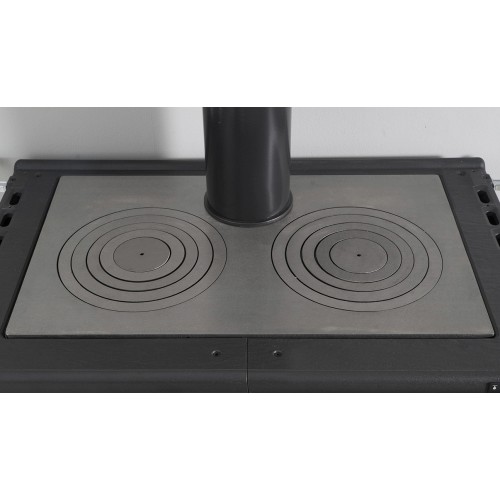 Sporák je vybaven ohřívací přihrádkou nad plotnu, pro ještě větší využití tepla při topení. Přihrádka je vyložena masivními přírodními kameny pro akumulaci tepla. Může tak sloužit k ohřevu pokrmů, sušení, dopékání nebo předehřívání talířů. Sporák je také možné zakoupit v základní verzi bez ohřívací přihrádky. (Milly)