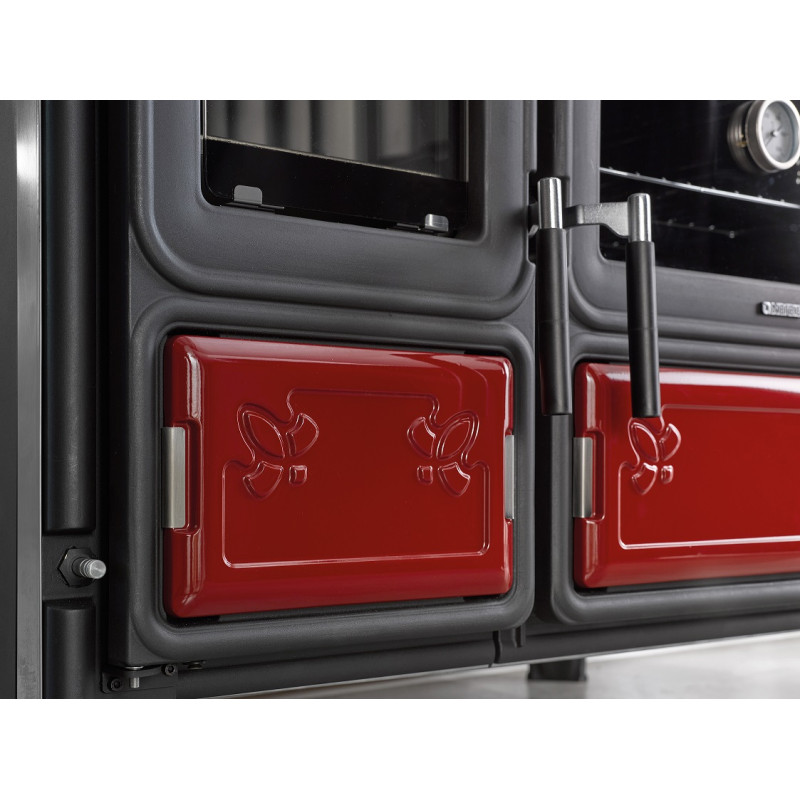 Kvalitní litinový sporák na topení dřevem a dřevěnými briketami s proskleným ohništěm a dekorativním kachlovým obkladem dvířek, zaručující nádherný vzhled. Kachlové obložení je nabízeno ve dvou barevných variantách – bordó a bílá. Tento typ sporáku se pyšní největší pečící troubou na trhu o objemu 78 l. Trouba je oboustranně smaltovaná, tudíž její povrch je odolný proti propálení a snadno se udržuje. Ve dvířkách trouby je integrovaný teploměr pro rychlou a přesnou kontrolu teploty, který tak zaručuje pohodlné pečení. Jako jeden z mála sporáků na trhu, umožňuje v zadní části napojení na externí přívod vzduchu a nečerpá tak vzduch pro hoření z místnosti.