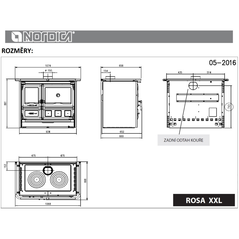 Vzdálenost od země do středu zadního vývodu kouřovodu: 743 mm