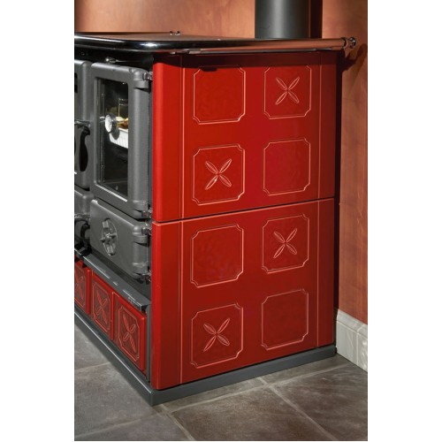 - Ve spodní části je výsuvný úložný prostor na dřevo nebo na příslušenství ke sporáku.