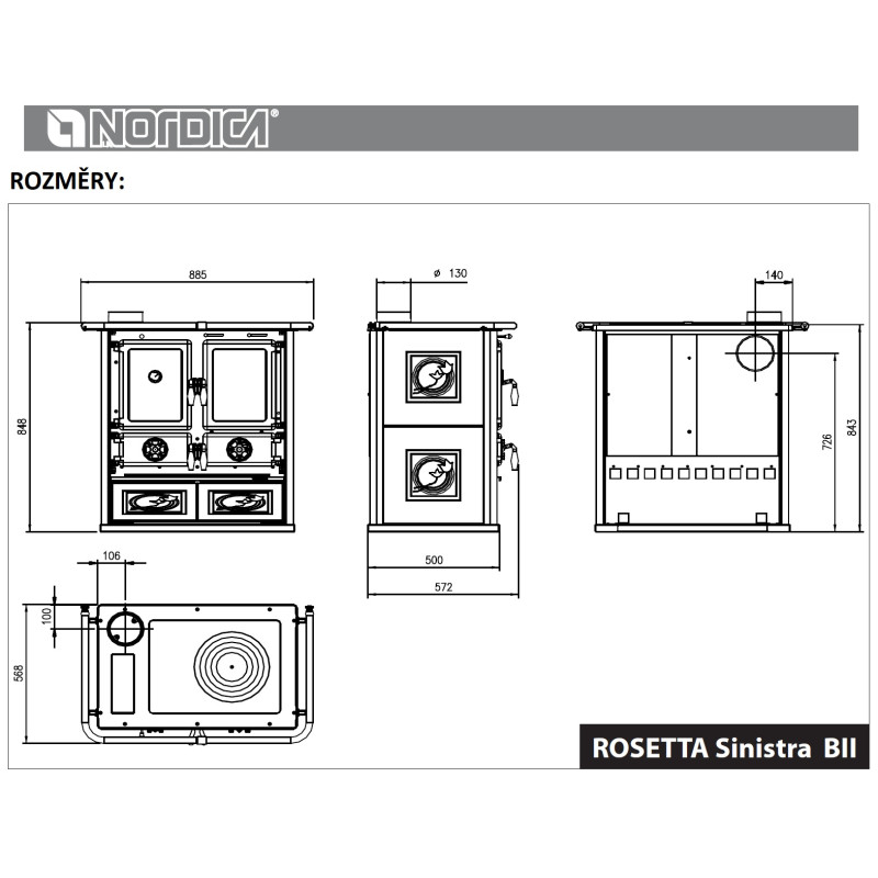 - Vývod pro napojení kouřovodu je nalevo a může být nahoru nebo dozadu.