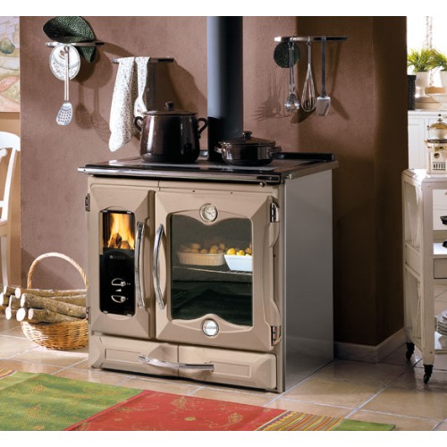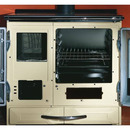 Sporák na dřevo Suprema je absolutní špička v konstrukci litinových sporáků! Plotna a rám, rošt, všechny dvířka – vše z masivní litiny, která je povrchově chráněná skleněným smaltem v barvě crema a černá. Trojité spalování s oplachem skla horkým vzduchem nedovolí zanesení skla.