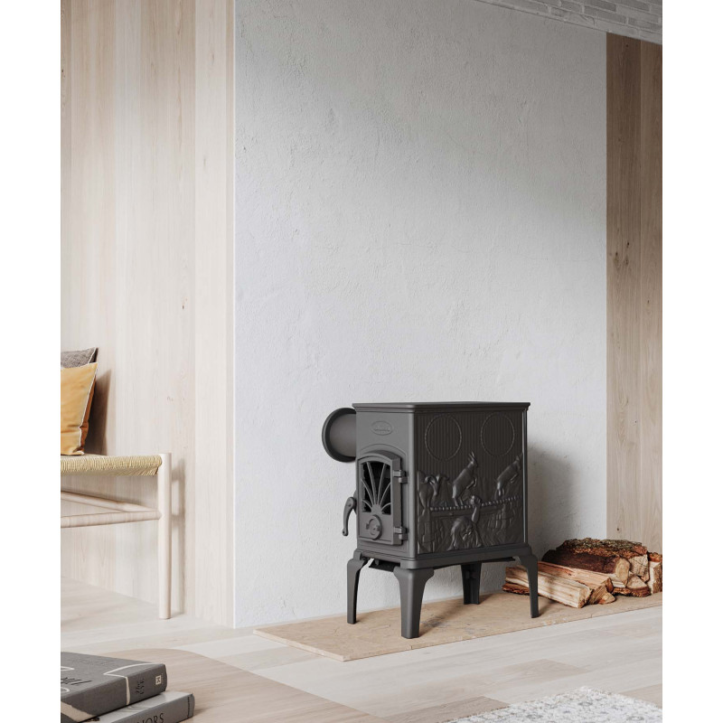 TRADIČNÍ KRBOVÁ KAMNA S NORSKÝMI DEKORACEMI A NASTAVITELNÝMI NOŽKAMI.
