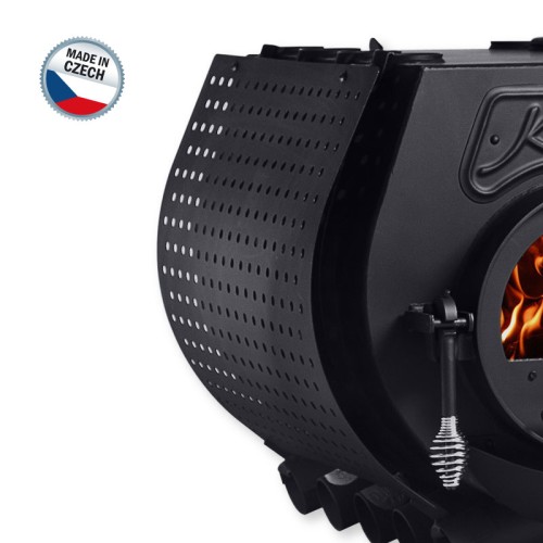 • Boční opláštění částečně chrání před nebezpečným dotykem v nejexponovanější části kamen a také usměrňuje boční tepelné vyzařování.