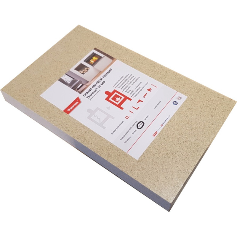 Desky THERMAX SF jsou k dispozici v opravném setu, který obsahuje vždy dvě desky o rozměru 500x300 mm o tloušťce desek 30 mm. Tyto desky jsou zatavené v tvrdé fólii společně s montážním postupem (naleznete v příloze). Rozměr 500x300 mm stačí na opravu většiny