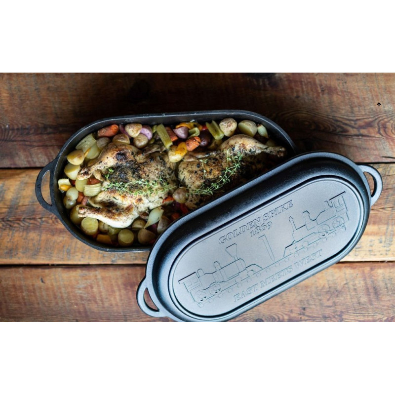 Oválná litinová zapékací mísa s víkem poslouží l přípravě široké škály pokrmů v troubě nebo na grilu. Oválný pekáč umožňuje nespočet způsobů přípravy rozmanitého spektra potravin. Zapékací mísa nemá nožičky, čímž se jeho použití rozšiřuje i o grily, krbová kamna, krbové sporáky a rovněž o přípravu jídel v klasické kuchyni na sporáku, vařidlové desce nebo v troubě. Užitnou hodnotu oválného litinového pekáče zvyšuje možnost použití samotného víka coby pánve, grilovací desky nebo servírovací nádoby. S ohledem na velikost je zapékací mísa vhodná pro přípravu jídla pro 8-12 osob.