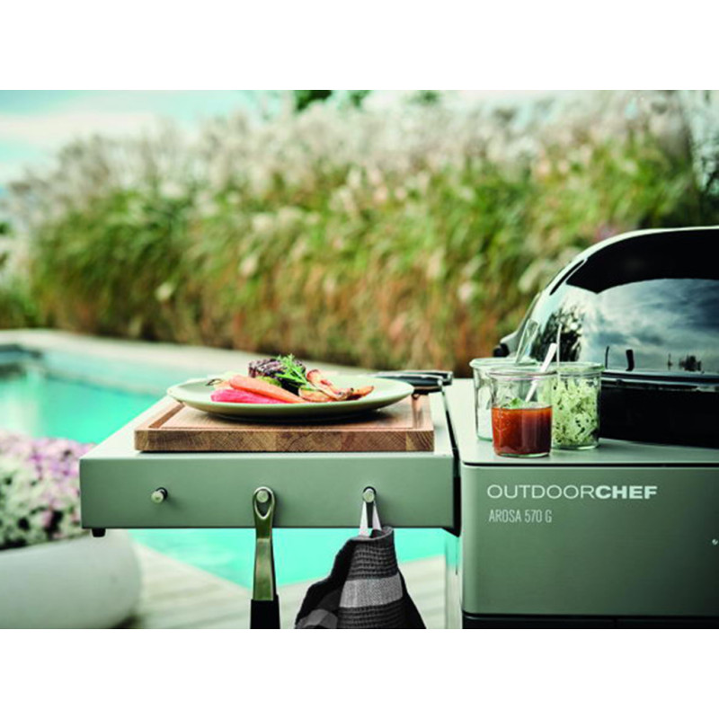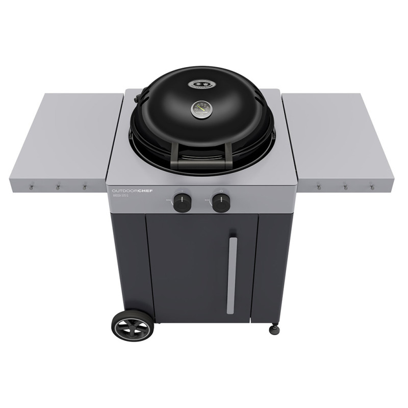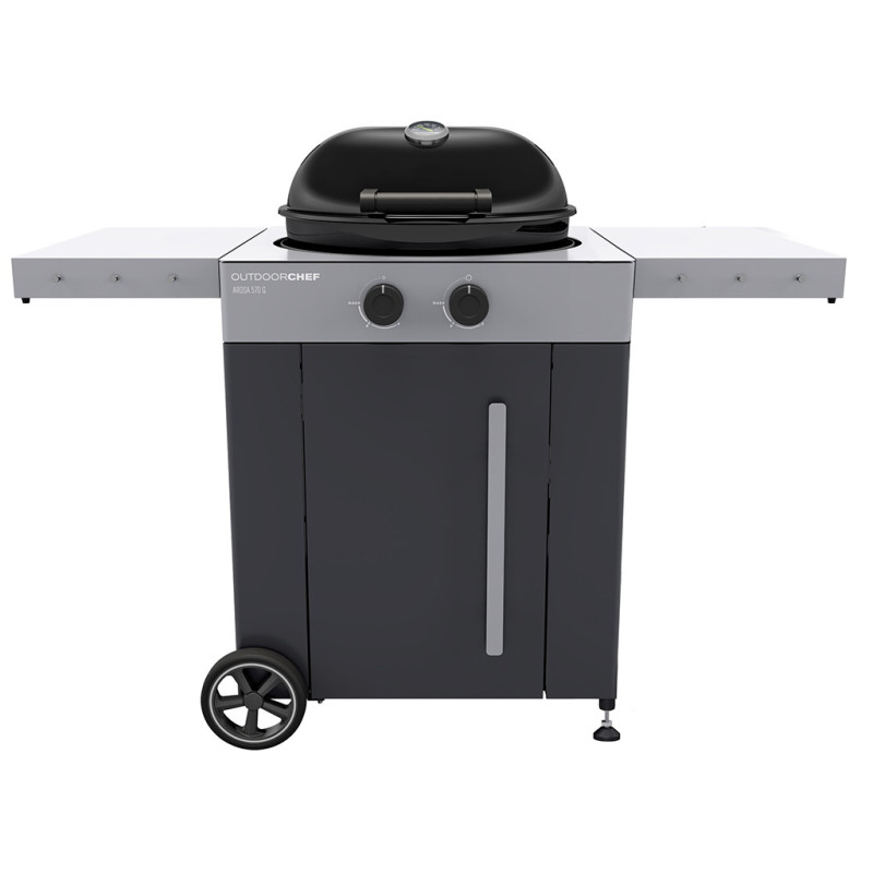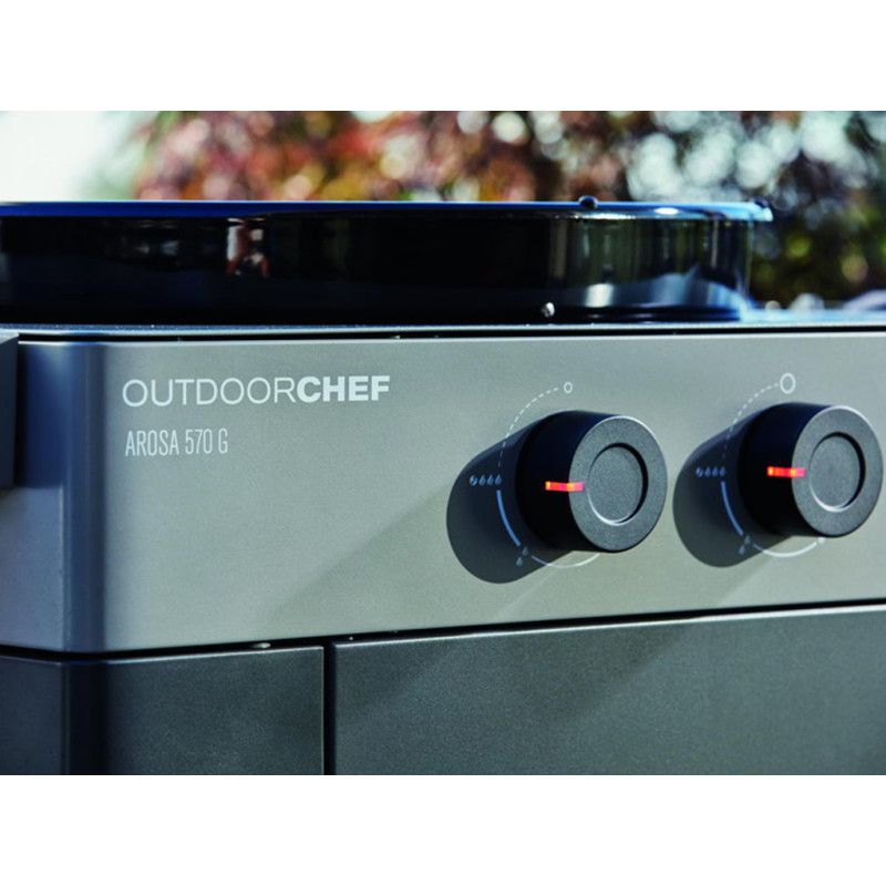 OUTDOORCHEF AROSA 570 G EVO GREY STEEL v šedém provedení přináší revoluci v kotlových plynových grilech. Kromě moderního minimalistického designu disponuje AROSA 570 G technologií Gourmet Burner (GBT) a novým systémem bezpečnosti Gas Safety System (GSS).Technologie Gourmet Burner umožňuje používat stálý a nepřetržitý teplotní rozsah 80 až 360 stupňů, což není funkce dostupná u žádného jiného grilu na trhu. Spolu s novým systémem hořáků vyrobeným výhradně z nerezové oceli otevírá celou řadu možností pro různé grilovací techniky. Nyní je možné u pečení masa a ryb snadno snížit teplotu na pouhých 80 stupňů!!! Ochrana plamene GSS ideálně chrání zapálené hořáky před povětrnostními vlivy a umožňuje vám snadné grilování při nízkých teplotách od 80 stupňů, a to i ve větrných dnech. Pokud je hořák zhasnut poryvem větru, systém to zjistí a hořák se znovu automaticky zapálí. Odkládací boční stolky s háčky na náčiní poskytují dostatek prostoru pro přípravu. Funkce uzamčení pravého bočního stolu také usnadňuje manévrování s grilem. Pevné hliníkové panty, moderní šedý vzhled a držáky na pizza kámen a litinovou mřížku již pouze dotváří dokonalou souhru vzhledu a funkčnosti.