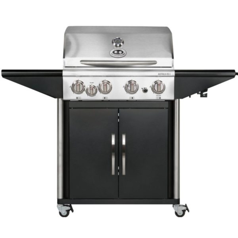Plynový gril OUTDOORCHEF AUSTRALIA 455 G je ideální pro větší grilování, například na zahradě či terase. AUSTRALIA 455 G disponuje grilovací plochou o rozměrech 64 × 44,5 cm, na které pohodlně připravíte grilovací pochoutky pro 8 - 10 osob. Díky systému čtyř nezávisle ovládaných hořáků umožňuje gril AUSTRALIA 455 G kombinovat přímé a nepřímé grilování. Originální štít u každého z hořáků brání hoření odkapávajících šťáv a optimálně šíří žár. Milovníci steaků ocení výkonný infračervený hořák, na kterém bleskurychle připraví maso, aniž by ztratilo šťavnatost. Čtyři otočná uzamykatelná kolečka zajistí snadný přesun po hladkém terénu. Pro dokonalý přehled při grilování je gril AUSTRALIA 455 G navíc vybaven praktickým teploměrem, který je zabudovaný ve víku. Odkládací stolky s exkluzivním povrchem z leštěné žuly na bocích a dostatečně velký úložný prostor pod grilem jsou jen třešničkou na dortu. Použité výrobní materiály zaručují kvalitu a dlouhověkost.