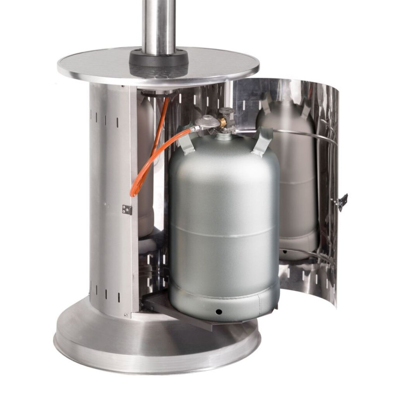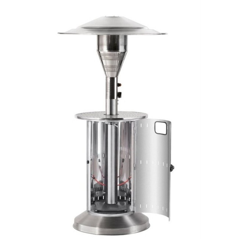 Jedná se o vysoce výkonné topidlo pro ohřev venkovních prostor. Má především vysoce kvalitní zpracování z masivních plechů a dostatečný výkon pro ohřev i větších prostor. Vhodný je proto jak pro běžné domácí používání, tak i pro profesionální užití v restauracích, barech a jiných prostorách pro více lidí. Je vybaven extra výkonným Turbo hořákem, který lze plynule nastavit na 5 až 14 kW. Se svojí spotřebou 364-1019 g plynu na hodinu dokáže na klasické 10 kg láhvi běžet od 10 hodin při plném výkonu až do 28 hodin. Hořák se zapaluje snadno pomocí zabudovaného elektrického zapalování na baterky. Všechna plynová topidla jsou určena pro použití s propanovými či propanbutanovými láhvemi. U všech plynových topidel Enders je u země skříňka na plynovou láhev a vlezou se do ní všechny české plynové láhve až do velikosti 11 kg. Skříňka je zároveň vybavena vysouvacím mechanismem pro snadnější výměnu plynových lahví. K další výbavě tohoto venkovního topidla patří kolečka pro jeho snadný transport a bezpečnostní pojistka, která zastaví přívod plynu a hořák vypne při převrhnutí topidla. Součástí balení je i hadice a regulátor pro napojení na klasické plynové láhve. Mezi další praktické vlastnosti topidla patří ještě velký odkládací stolek nad přihrádkou na láhev, bezpečnostní uzamykatelná skříňka a oko pro zajištění proti krádeži a také zasouvací hlava topidla pro jeho snadnější skladování (tyč lze zasunout, jen pokud v topidle není láhev). Všechny plynové zářiče s výhřevem dokola 360° by měly být postaveny alespoň metr od stěny a strop by neměl být blíže než metr nad nimi.