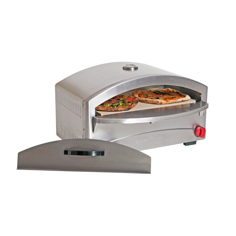 Cihlové italské pece si získaly celosvětový věhlas v souvislosti s legendární řemeslnou přípravou pizzy s křupavou kůrkou a lahodnou náplní. Nyní máte možnost připravit si sami lahodnou italskou pizzu na vlastní terase s přenosnou pecí na pizzu Camp Chef. Speciálně navržená pec díky své dvojité konstrukce. keramickému panelu a regulovatelnému výkonu připraví stejně lahodnou pizzu jako pizza upečená v kamenné či cihlové peci na hořícím dřevu. Díky ovládacímu knoflíku s mikroregulací výkonu lze velmi přesně nastavit požadovanou teplotu.