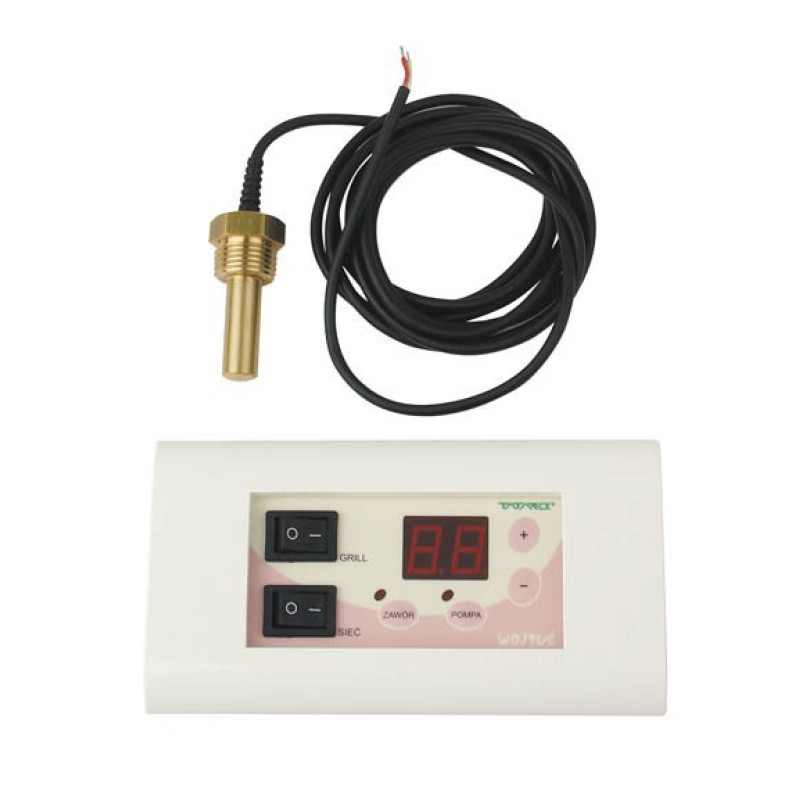 Měří teplotu vody v plášti krbu, a podle nastavených parametrů řídí činnost oběhové pumpy a elektromagnetického ventilu s cílem dovedení vody do konečných částí vodního systému (bojler, ohřívač apod.). Regulátor chrání instalaci před zamrznutím - automaticky spouští oběhovou pumpu, když teplota vody klesne pod 4?C a informuje zvukovým signálem a blikáním, když voda dosáhne teploty 95?C.