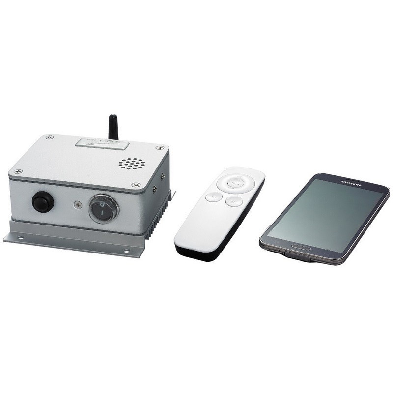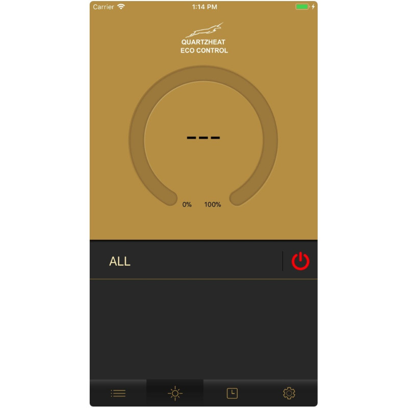 2) mobilním telefonem po stažení aplikace dle návodu - ovládání pomocí bloetooth, tzn. regulátor může být i skryt (např. pod sádrokartonem); intenzita záření/výkonu je ovládána po 1% v rozmězí 0-100% celkového výkonu zářiče.