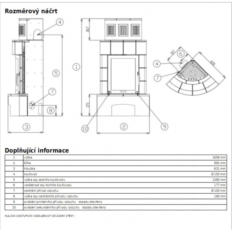 • Kamna nemají přívod terciálního vzduchu, ale mají možnost napojení na extérní přívod vzduchu. Je potřeba dokoupit hrdlo.