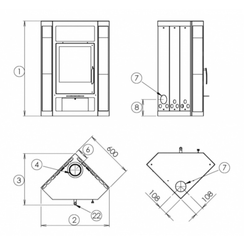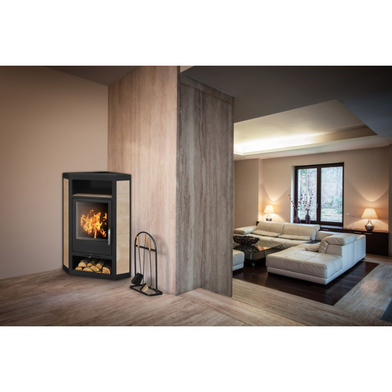 Kamna jsou jednodušší konstrukce, určená do rohu místnosti s velkým sklem, díky kterému umožňuje průhled na plameny a vytváří v místnosti romantickou atmoféru. Možnost zapojení pouze horního vývodu.