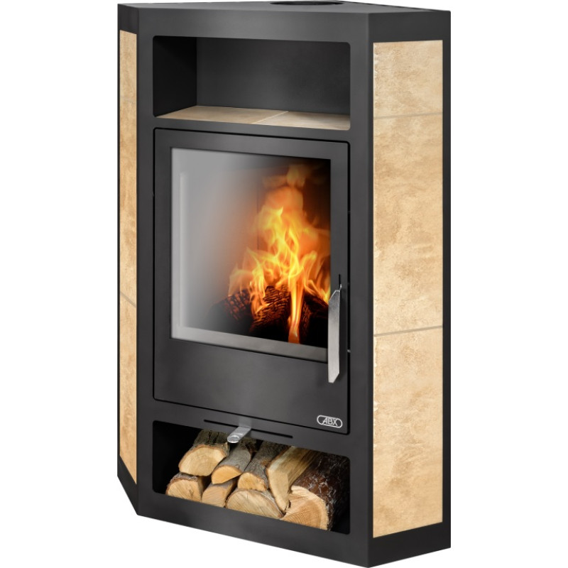 Rohová krbová kamna ABX Lahti černý korpus, opláštění keramika