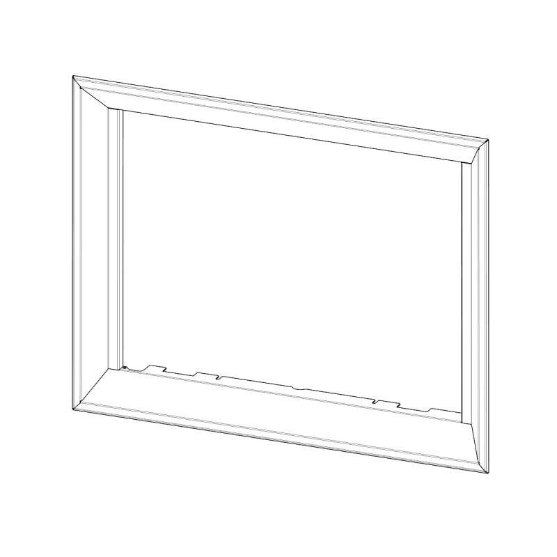 Krycí rámeček zakrývá diletační spáru mezi vložkou a obestavbou. Instalace krbové vložky do obestavby tak působí čistým dojmem, dvířka vložky jsou decentně orámovány bez viditelné spáry.
