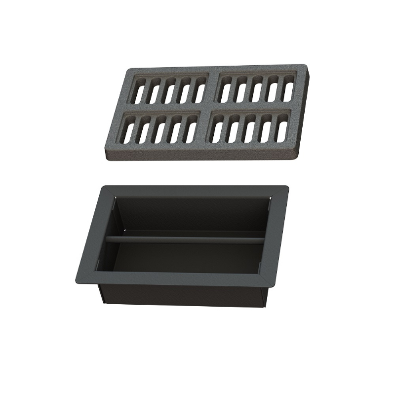 • Rošt 180 x 120 mm vč. popelníku jako konfigurovatelný díl ke všem novým typům krbových vložek Bef místo carconové záslepky