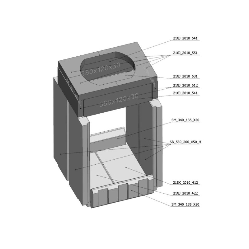 Šamotová komora komplet KV DYNAMIC T 3G 44.55.01