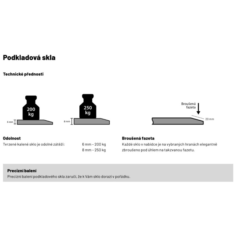 Tvrzené čiré kalené sklo odolné zátěži do 200Kg.