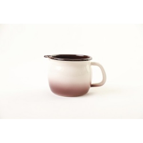 Smaltovaný baněný hrnek s výlevkou v barvě capuccino. Obsah 0,8 l