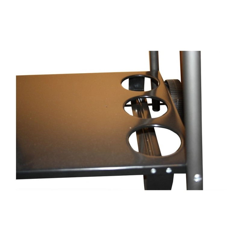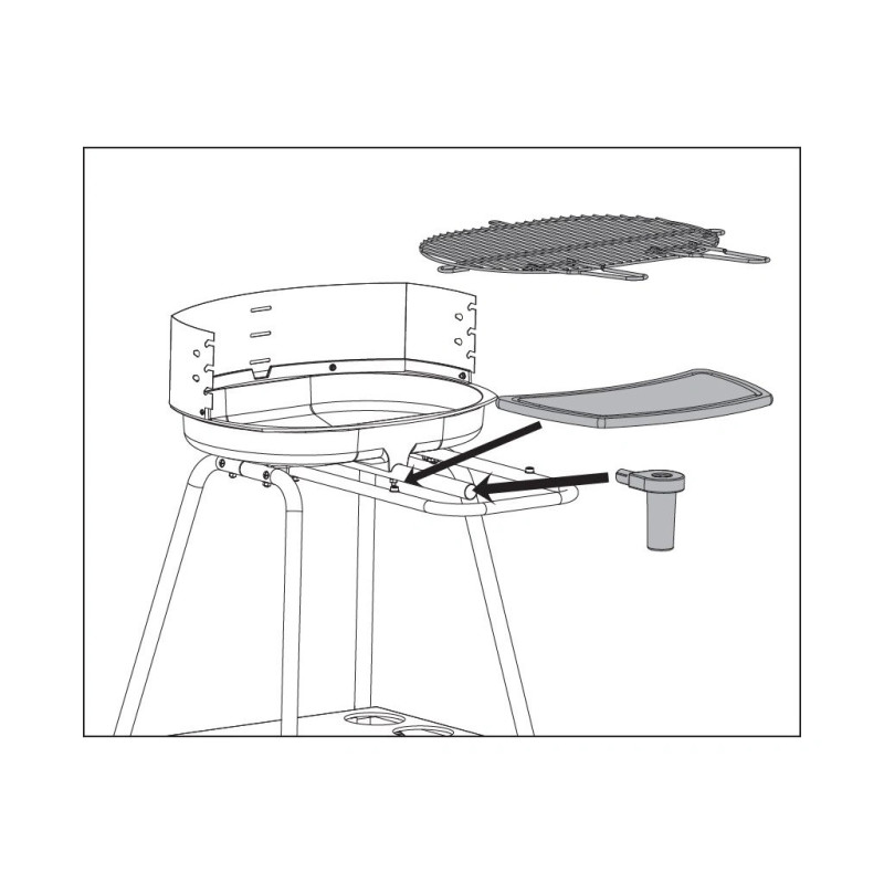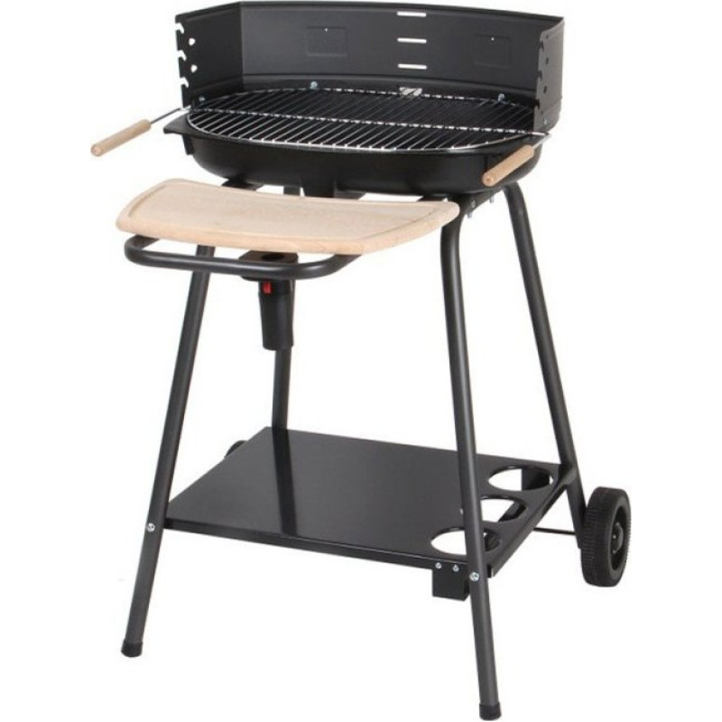 Gril má kolem grilovací plochy silný lakovaný plech díky kterému se může nastavovat výška chromovaného roštu v několika úrovních. Pojízdný podvozek grilu je stabilní a robustní. Gril má praktické dřevěné prkénko, spodní velkou plechovou polici s držáky na láhve. Praktické háčky na zavěšení grilovacího náčiní.