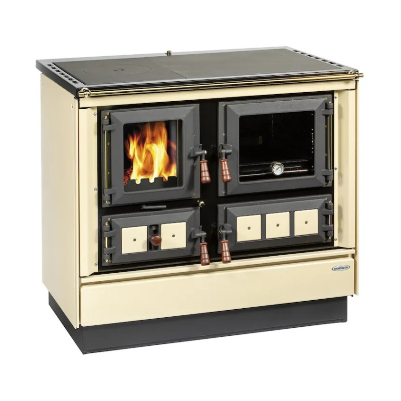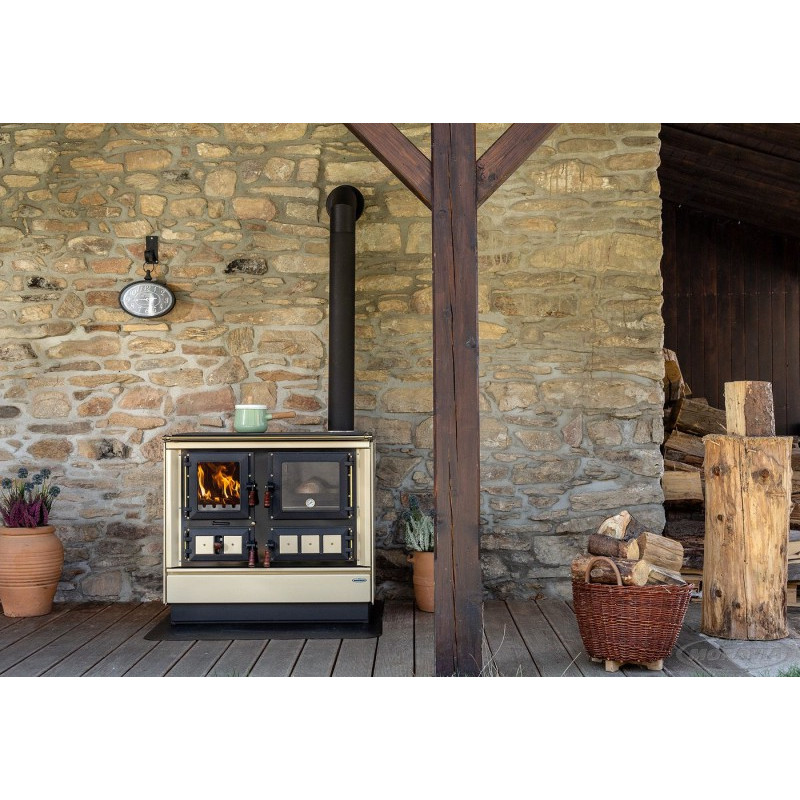 Sporák KVS MORAVIA typ VSP-9112 Klaudie je konstruován na spalování pevného paliva, jako jsou dřevo a dřevěné brikety, 924 mm