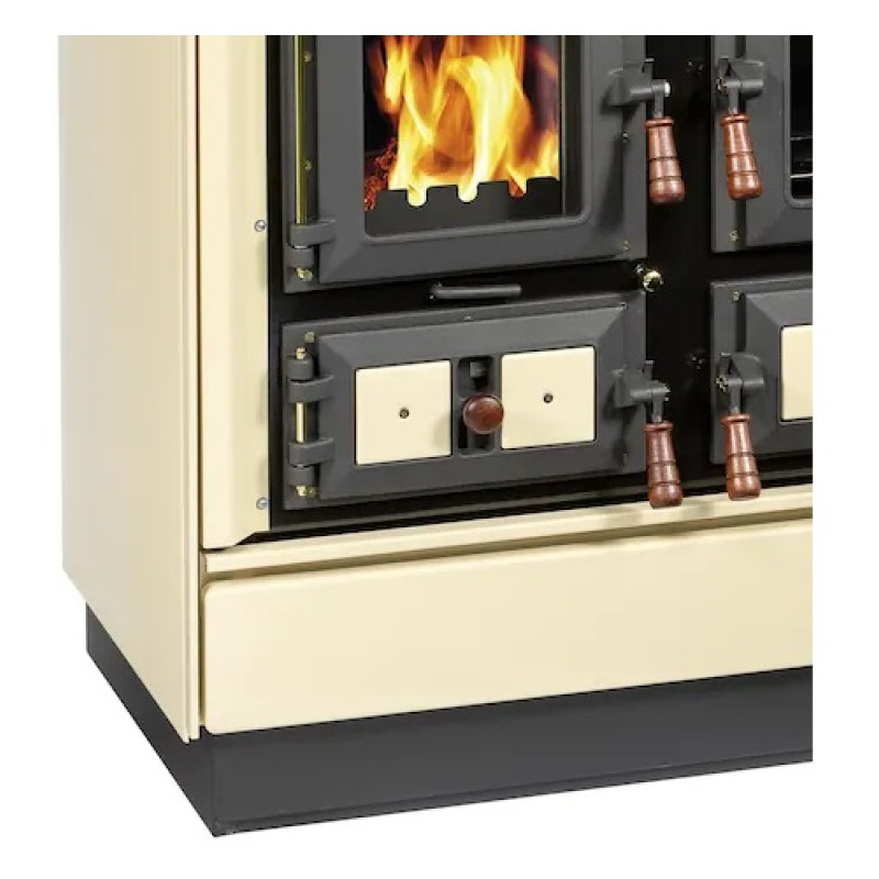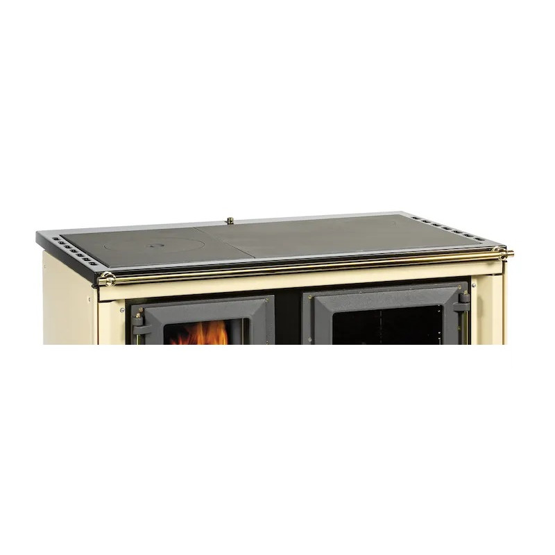 béžový, pravý, titanové (zlaté) doplňky, dřevěná madla, smaltovaný černý rám plotny, ocelová plotna dělená stříkaná