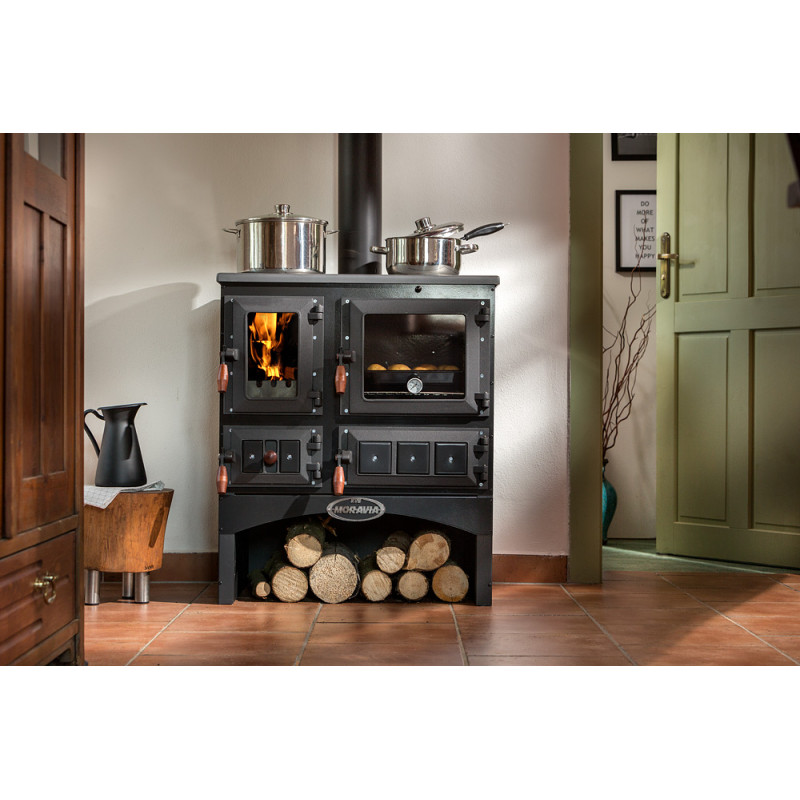 Sporák KVS MORAVIA typ 9170 Oliver je konstruován na spalování pevného paliva, jako jsou dřevo a dřevěné brikety.