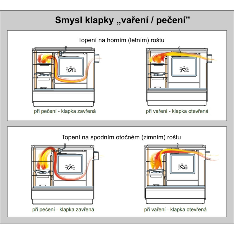 Topeniště je tvořeno jako tradičně silnými šamotovými cihlami a pevným litinovým roštem. Tyto materiály máme již léta ověřené, jsou odolné vysokým teplotám, vyznačují se pevností, stálostí tvaru a schopností déle temperovat.
